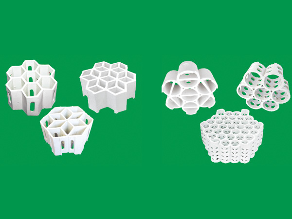 陶瓷規(guī)整填料與散堆填料相比具有效率高,降壓低,處理量大,持液量小,放大效應(yīng)不明顯,操作彈性大等一系列優(yōu)點(diǎn)。它由許多具有相同幾何形狀的填料單元體構(gòu)成。陶瓷規(guī)整波紋